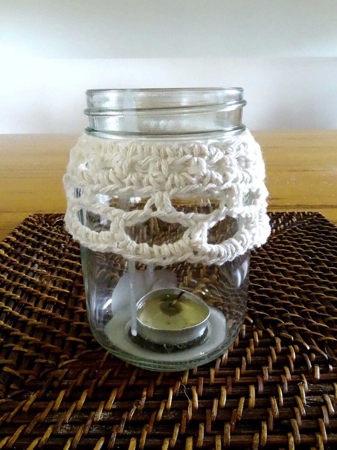 CROCHET HOOK: METRIC: Size - 3.50mm, USA: Size - E-4, UK/CANADIAN: Size - 9. I used 100% cotton in 8 ply yarn for this project. It is very important you only use 100% cotton if you plan to burn a teal light or any other candle in your mason jar due to the heat it generates. You should be able to make a number of cozies from 1 ball of yarn. It’s also a great way to use up yarn ends. Darning needle to sew in ends.