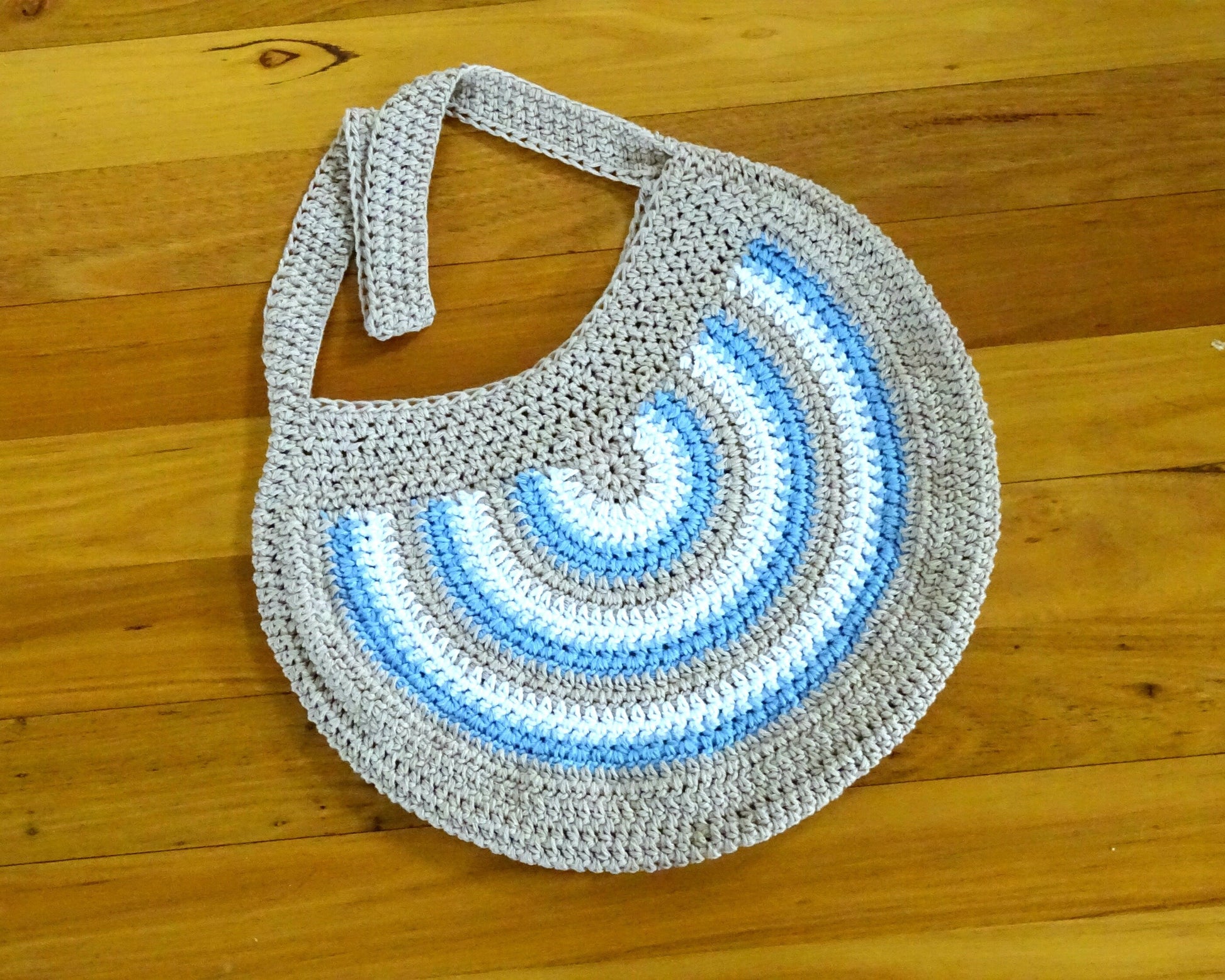 I have designed the bag in three pieces. A front and a back section, which are identical, and a long circular piece which forms the strap. The strap wraps around both sides of the bag giving it strength and durability. For this pattern I have used a 10-ply chunky cotton/acrylic.