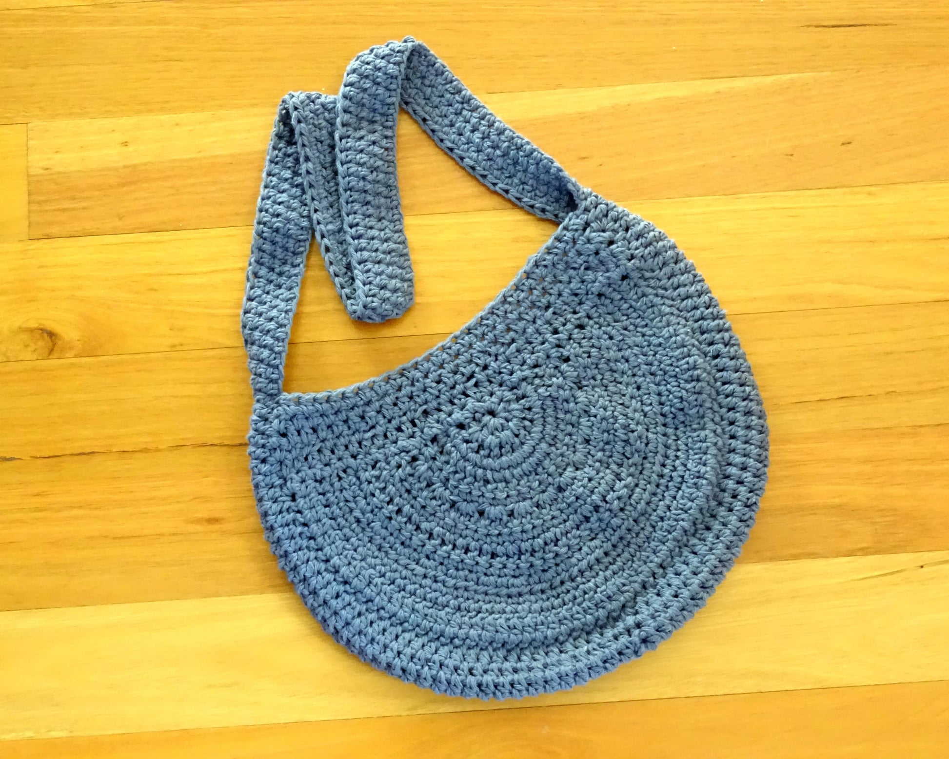 I have designed the bag in three pieces. A front and a back section, which are identical, and a long circular piece which forms the strap. The strap wraps around both sides of the bag giving it strength and durability. For this pattern I have used a 10 ply chunky cotton/acrylic but I have also made this bag in a 12 ply cotton and it looks just as good but will be a little larger.