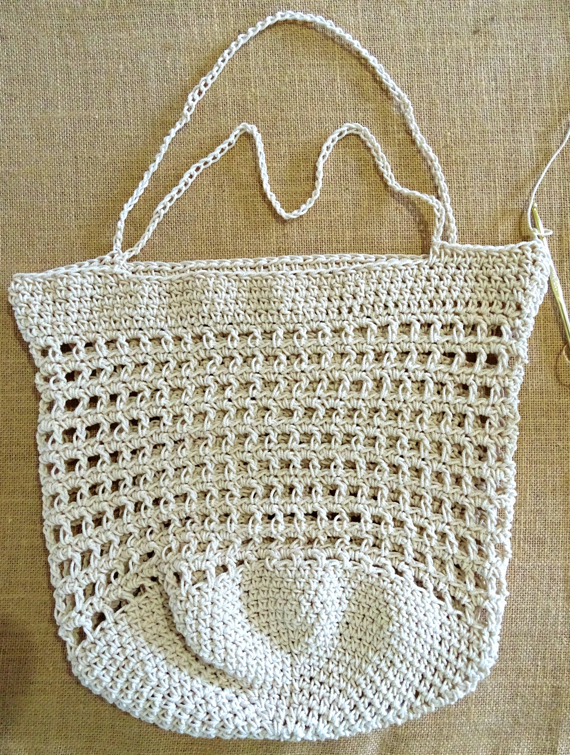This pattern is very easy to follow with a concise 14-page step by step guide showing large images at each stage. This bag is worked in a round so there are no seams to join at the end. For this pattern I have used a 2mm cotton macrame cord, but a 10 ply chunkier cotton or jute style yarn would work equally as well.