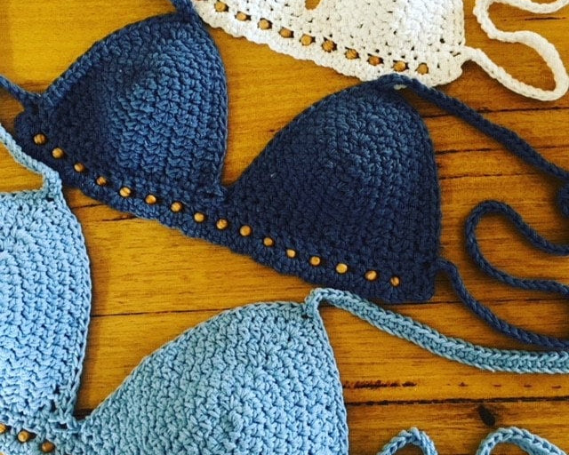 MATERIALS CROCHET HOOK: METRIC: Size 5mm, USA: 8/H, UK: Size 6 YARN: You will need about half x 200g balls (depending on the size you are doing) of Anette Eriksson Eco Cotton XL yarn for this bikini top. Any yarn that is 10-12 ply approximately cotton or cotton acrylic would be suited to this project. Epic Yarn and Colours is also a great choice. BEADS: Either 8mm or 10mm in diameter with a hole big enough to thread through yarn - Small - 12, Medium - 16, Large - 20 Darning needle to sew in ends.