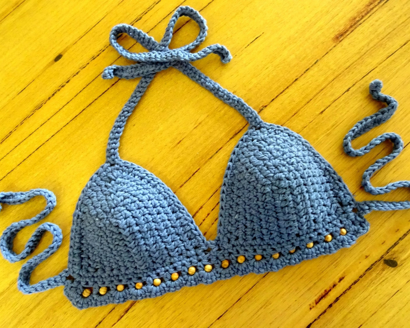 I have designed this easy beaded crochet bikini halter top pattern with basic crochet stitches using US terminology of chains, single crochet and half double crochets so it is not complicated but still has an overall effect of looking fabulous. For UK crocheters there is a stitch conversion for you.