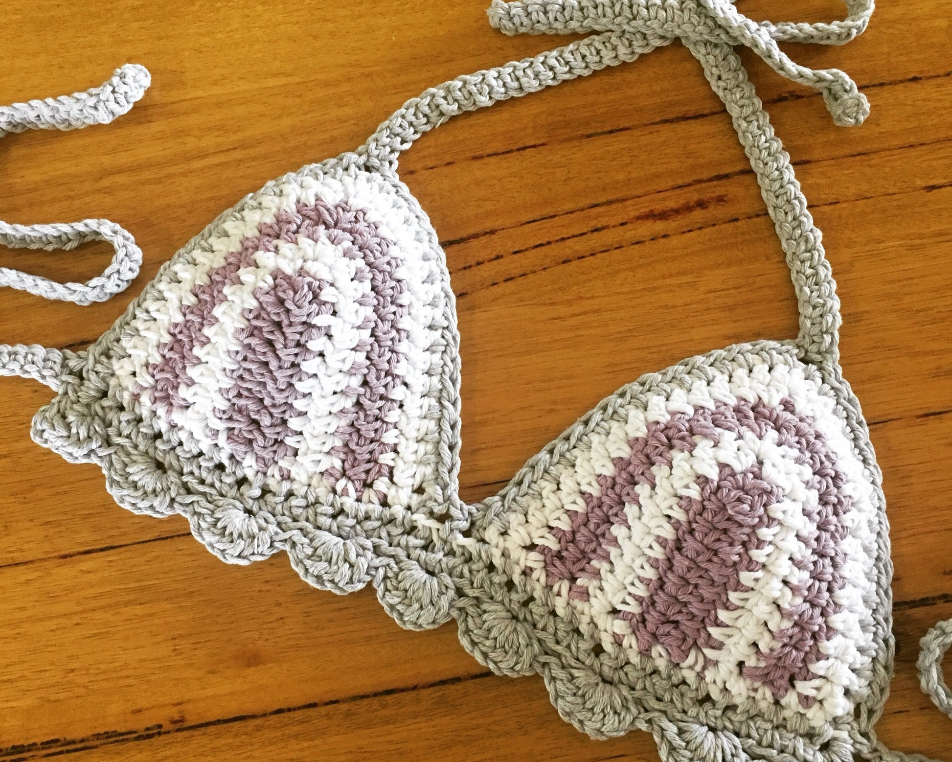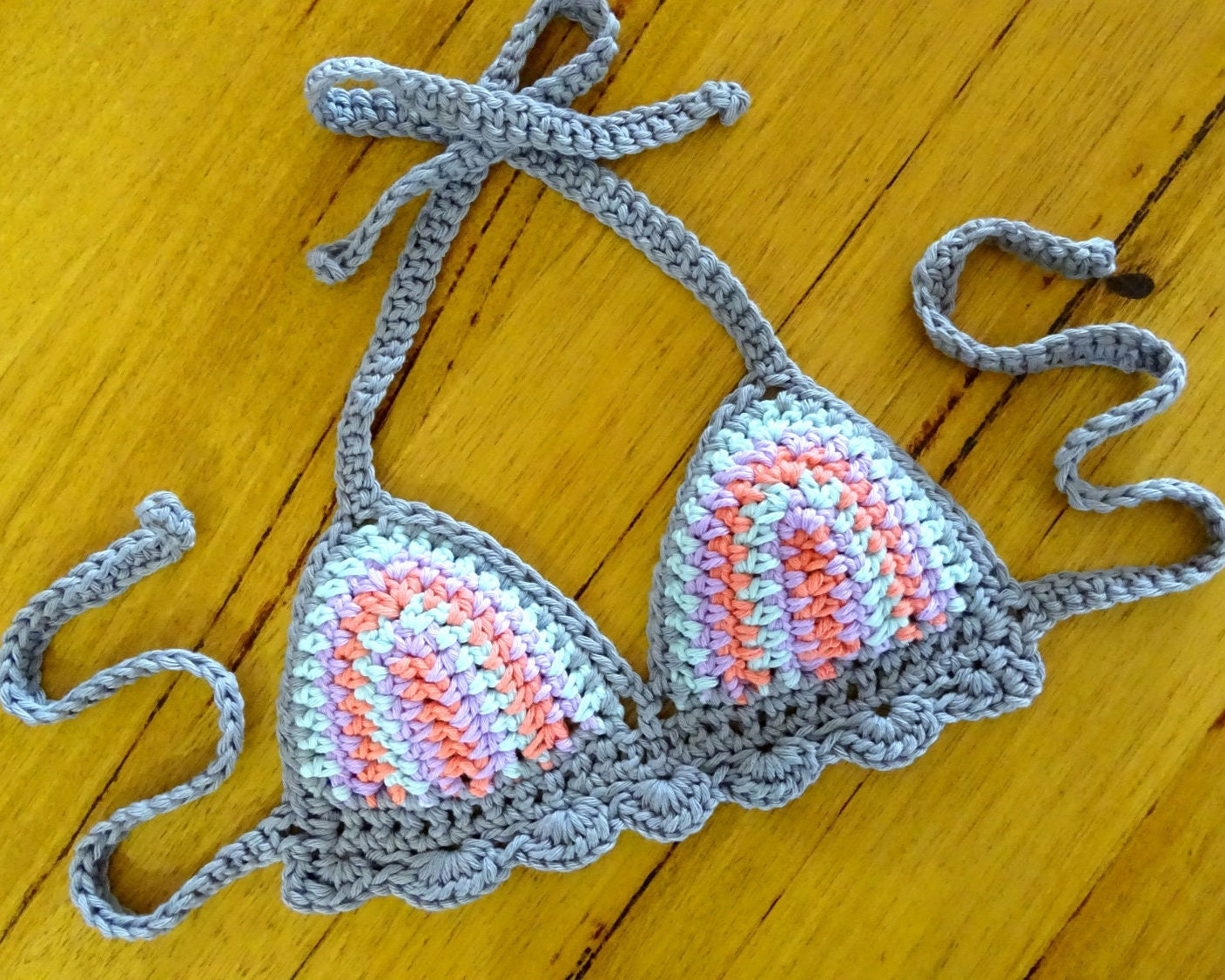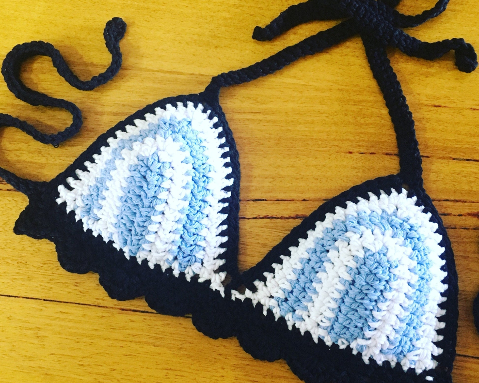 I have made this halter bikini top in a soft 10 ply cotton yarn.
