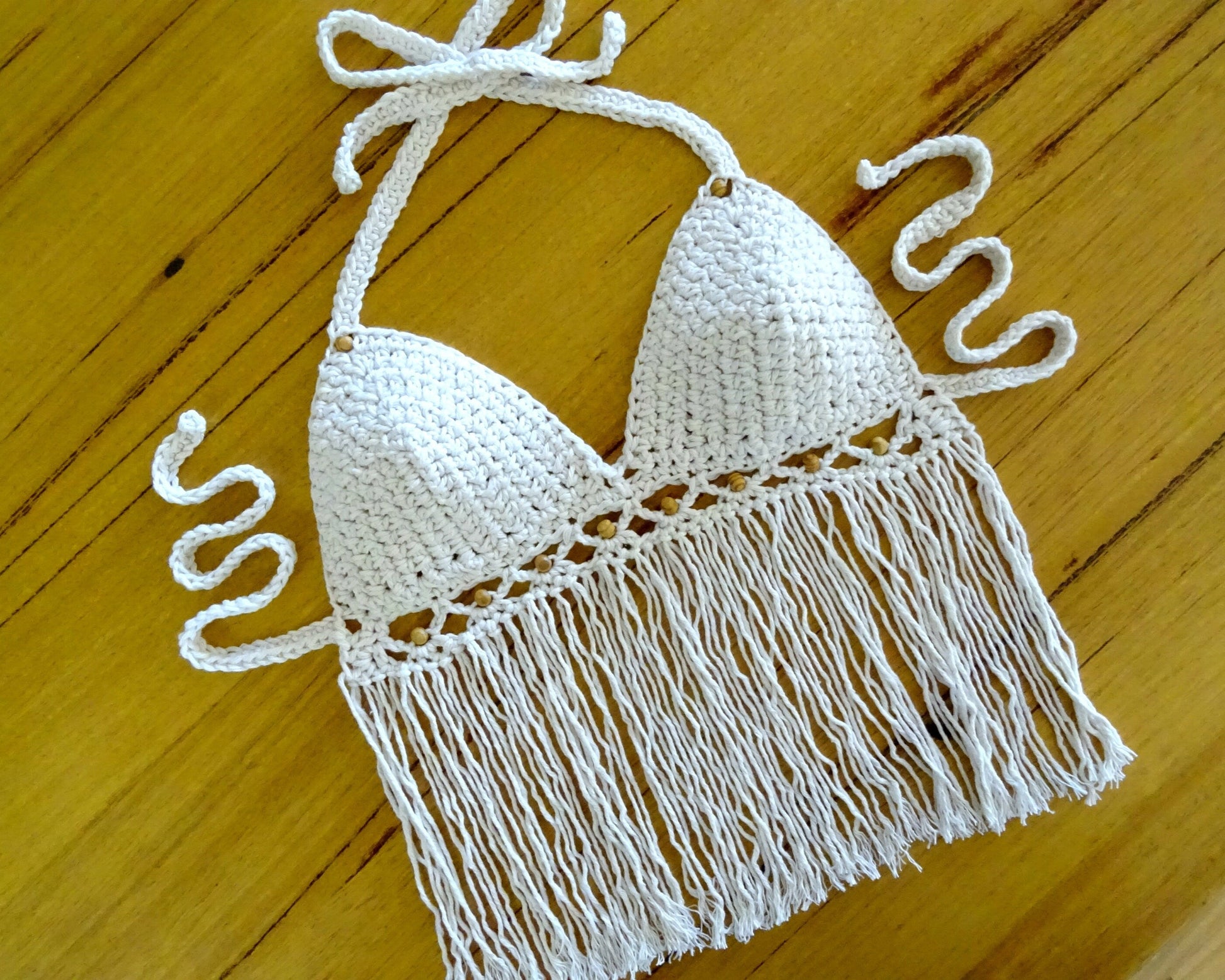 Crochet Boho Top Pattern Download | Crocheted Tassel Bikini Halter Crop Top PDF Pattern | Beaded Bohemian Clothing Festival Top 0114