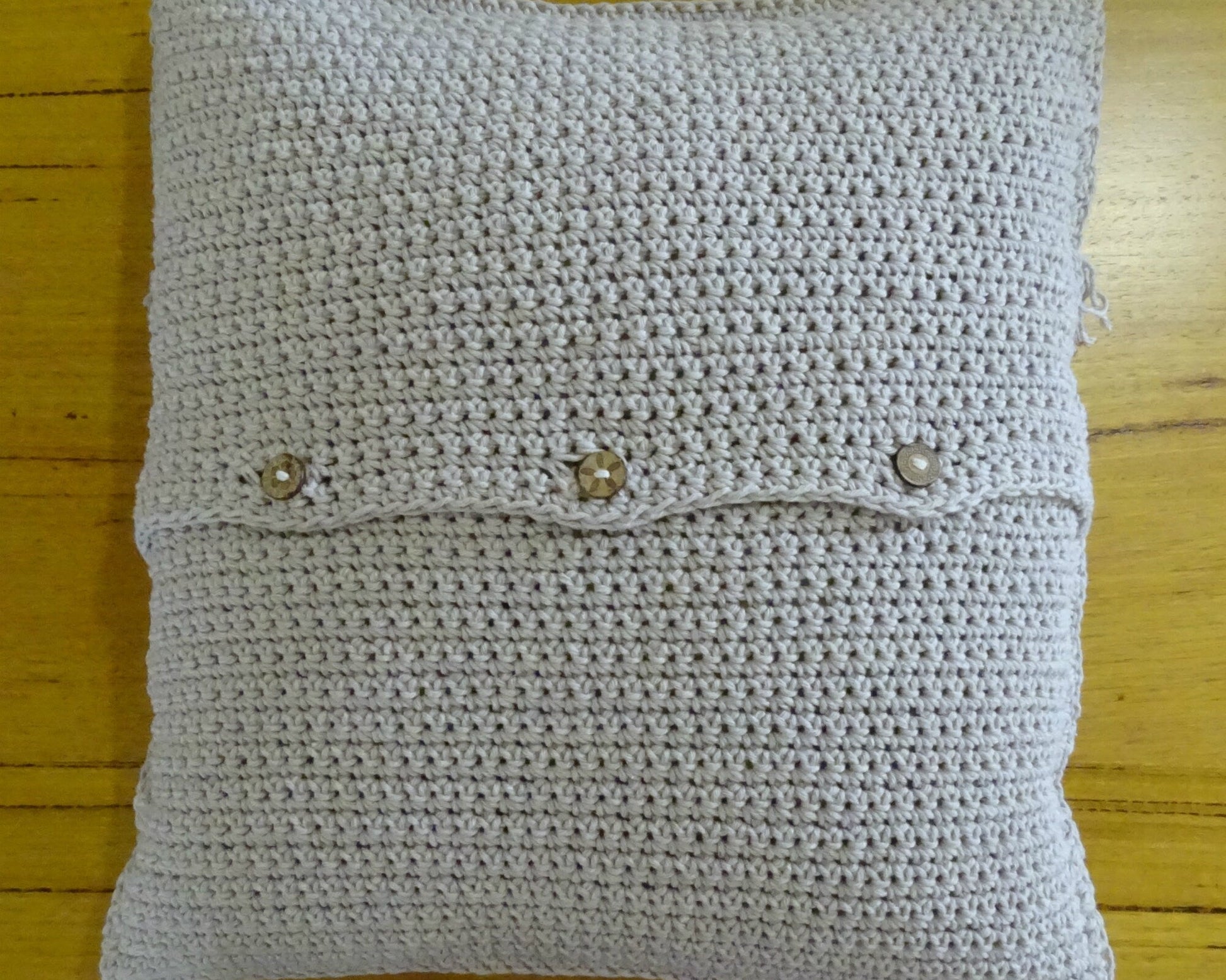 All my patterns are written in my own unique style giving you step by step instructions with large images at each stage so you can track your progress visually as well. This pattern is 16 pages in length. The textured design is featured on the front, and the back of the cushion is plain and closes with 3 natural wooden buttons. I have finished this cushion cover in a 10 ply eco cotton with a stitch tension of 15 stitches x 19 rows (10 x 10 cm sq).